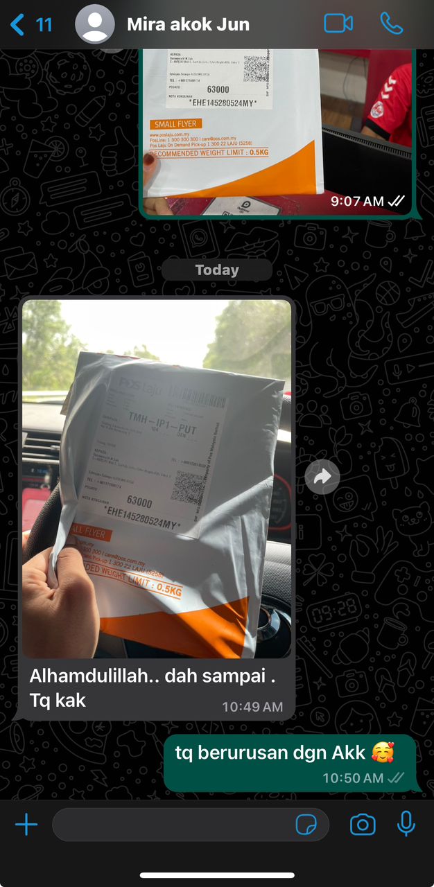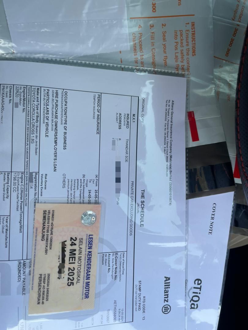 Walaupun saya jauh berlainan negeri Sabak Bernam, sy masih boleh order roadtax melalui whatsapp & Penghataran ambil masa 3hari shj melalui pos laju